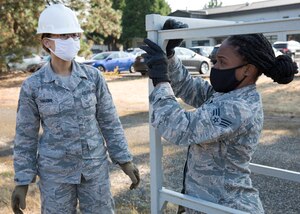 U.S. Air Force Staff Sgt. Kamen D. Ester, left, 446th Airlift Wing occupational safety technician, reviews personnel documents during a scheduled appointment with Senior Airman Huy X. Nguyen, 446th Force Support Squadron (FSS) career development advisor, on Joint Base Lewis-McChord, Washington, July