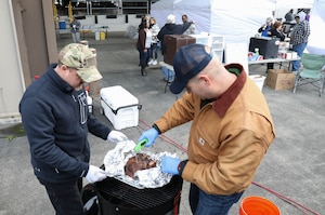 Airmen of the 62nd and 446th Airlift Wings participate in Diversity Day, an event that celebrated cultural differences between service members Jan. 19, 2018, on Joint Base Lewis-McChord. Barbecue prepared by Washington State pitmasters, paired with members of both wings, was served free of charge.