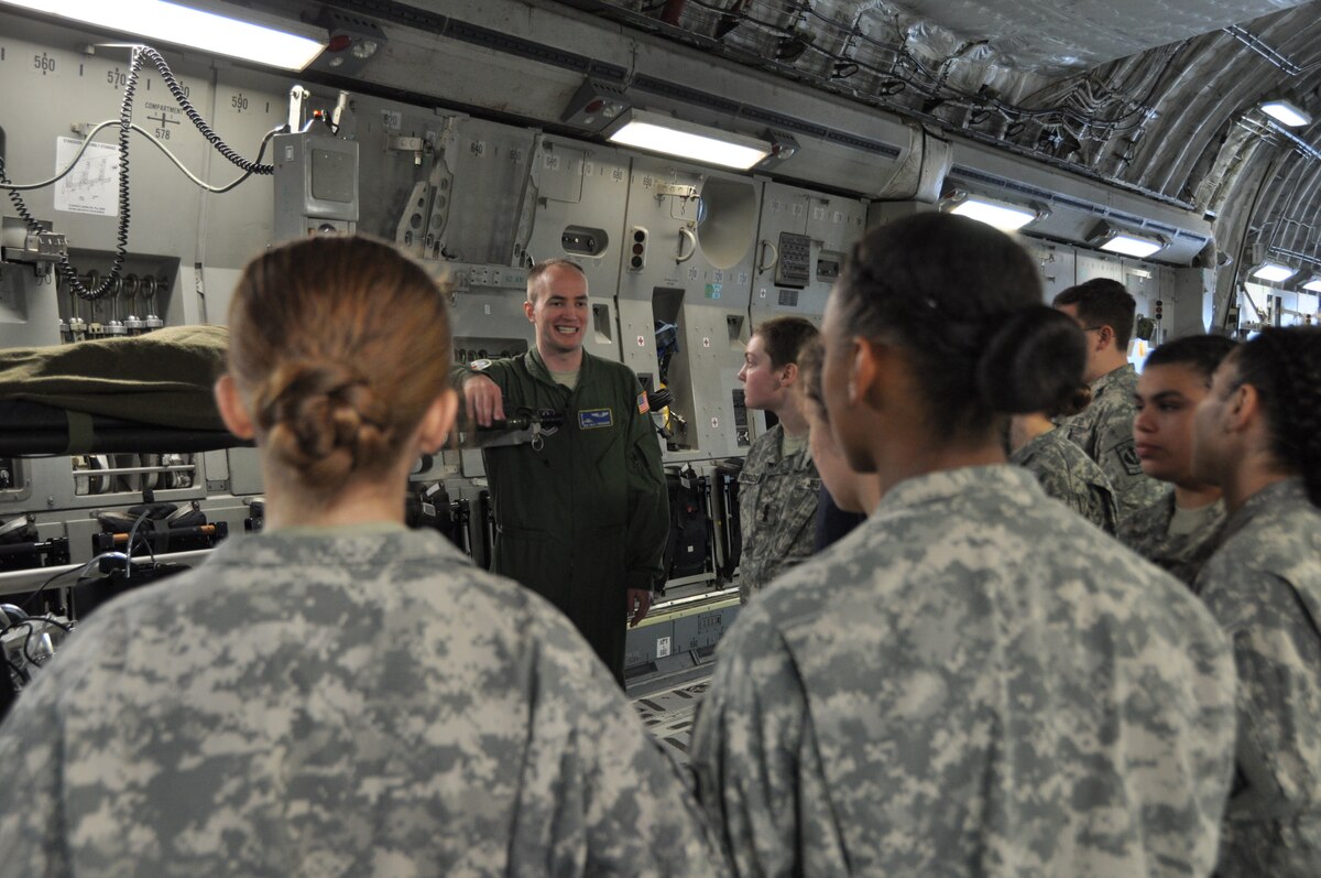 Retired U.S. Army 1st Sgt. Greg Bynum, an instructor for Reynolds High School Army JROTC program, speaks to cadets about military history at Joint base Lewis-McChord on April 7, 2018. (U.S. Air Force by 1st Lt. Alyssa Hudyma)