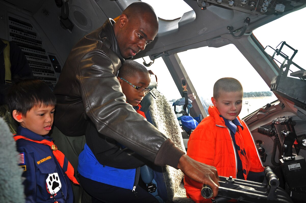 Parents and scouts from Cub Scout Den 3 Pack 391 of Des Moines, Wash., and Boy Scout Troop 43 of Lake Stevens, Wash., pose in front of a C-17 Globemaster III for a group photo March 3 after visiting the 446th Airlift Wing, McChord Field, Wash. The Scouts and Cubs, in addition to touring the aircraft, they toured the explosive ordinance facility, the air traffic control tower and had a wing mission briefing. The 446th AW public affairs office hosted the tour as part of its community outreach program. (U.S. Air Force photo by Tech. Sgt. Tanya King)